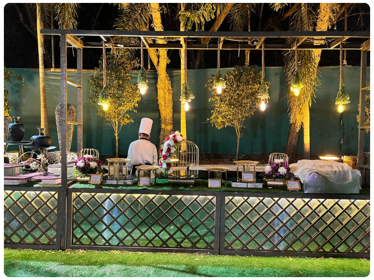 Garden Weddings & Receptions – Serve regal menus under floral mandaps and fairy-lit lawns, complete with live counters and mocktail bars.